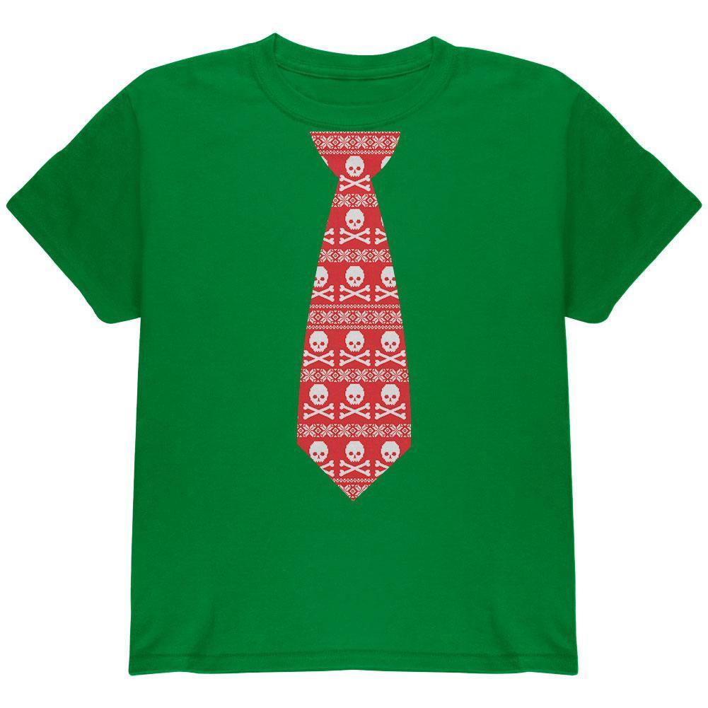 Skull And Crossbones Red Tie Ugly Christmas Sweater Green Youth T-Shirt